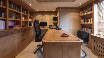 Guest accommodations are designed to provide maximum flexibility and comfort, with 7 cabins that can host up to 12 guests. The layout includes a sumptuous master suite located on the upper deck, two stylish VIP cabins, two double cabins, and two twin cabins with single beds. In total, there are 9 beds: 1 king-size, 2 queen-size, 2 doubles, and 4 singles. To ensure an impeccable and discreet service, Alexandra can also accommodate up to 12 crew members.
